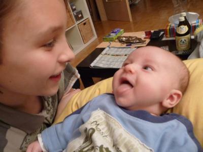 Heute (15.2.) war mal so ein richtig anstrengender Tag. Vincent war dauernd unruhig, quengelig und unzufrieden. Auch beim Stillen hatte er irgendwie Pfeffer im Hintern und es gab nur wenige Momente, in denen er sein zahnloses Engelslächeln dargeboten hat. In diesen wenigen Momenten allerdings fällt mir selber das Lächeln dann doch sehr sehr leicht, auch wenn ich aufgrund seiner Unruhe ziemlich erledigt bin.